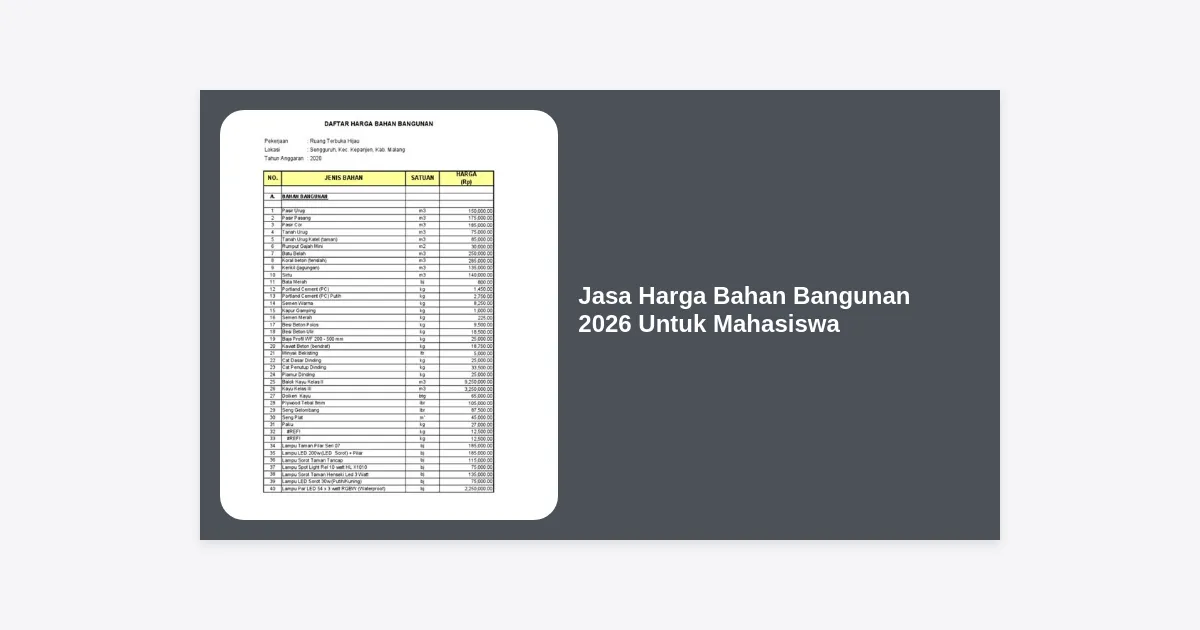 - Pentingnya Data Harga Bahan Bangunan 2026 bagi Mahasiswa