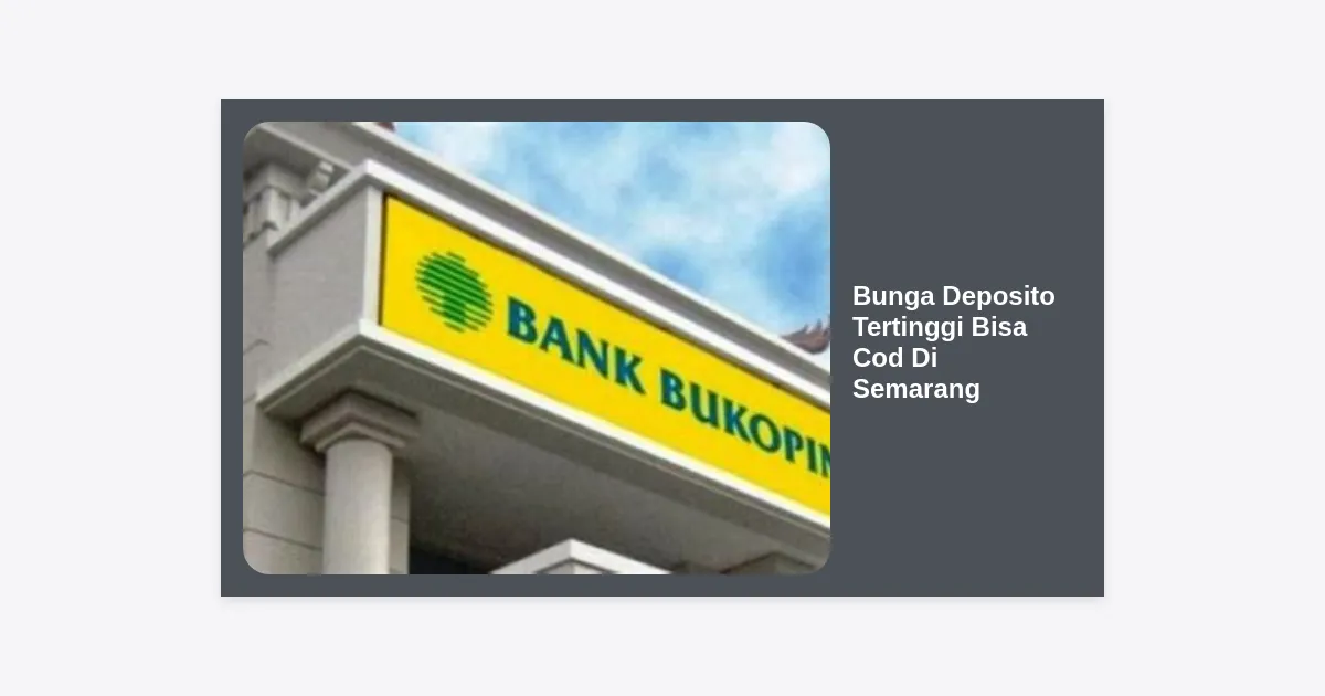Deposito berjangka adalah produk simpanan perbankan yang memberikan bunga di atas tabungan biasa dengan jangka waktu tertentu. Bagi warga Semarang, mencari Bunga Deposito Tertinggi Bisa Cod Di Semarang bukan hanya soal kemudahan, tapi juga soal optimasi aset. Bunga deposito biasanya dipengaruhi oleh BI Rate atau suku bunga acuan Bank Indonesia.
