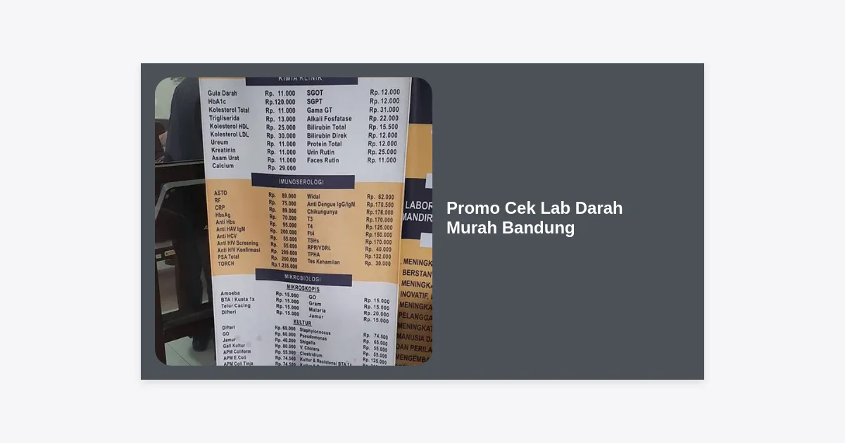 Bandung memiliki banyak fasilitas kesehatan berkualitas. Berikut adalah beberapa laboratorium yang sering menawarkan promo menarik: